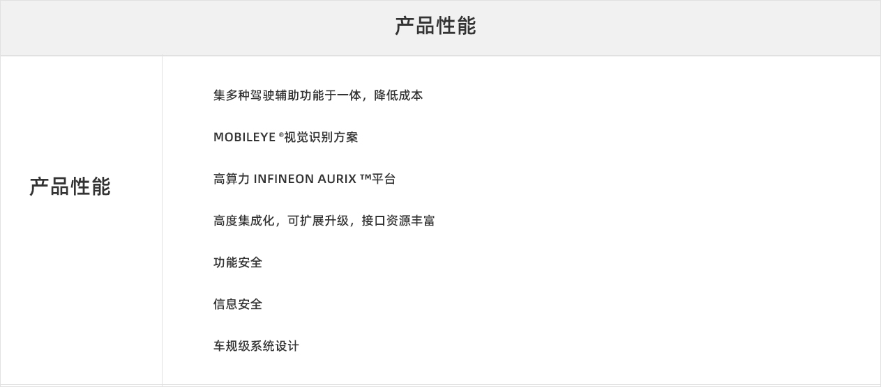 前视主动安全摄像头(Forward Active Safety Camera,FAS-Cam)是华创峰业整合 Mobileye、Infineon、Elektrobit 等公司优势资源,设计研发的高性价比、多功能一体、高度集成式驾驶辅助产品。面向 L2 级以下(包含 L2 级)的驾驶辅助功能(SAE J3016)需求,经纬恒润可以基于该产品集成自主研发的 ADAS 功能,为车辆提供量产 ADAS 产品解决方案。