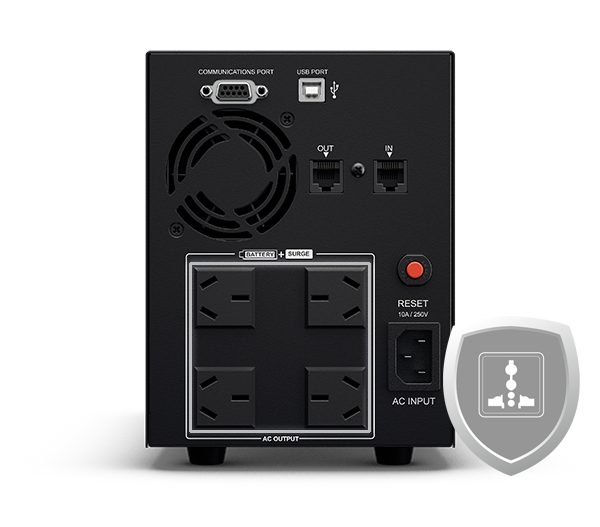 UPS提供数据线保护,保护连接设备免受雷电引起的浪涌和尖峰,避免潜在的系统损坏。