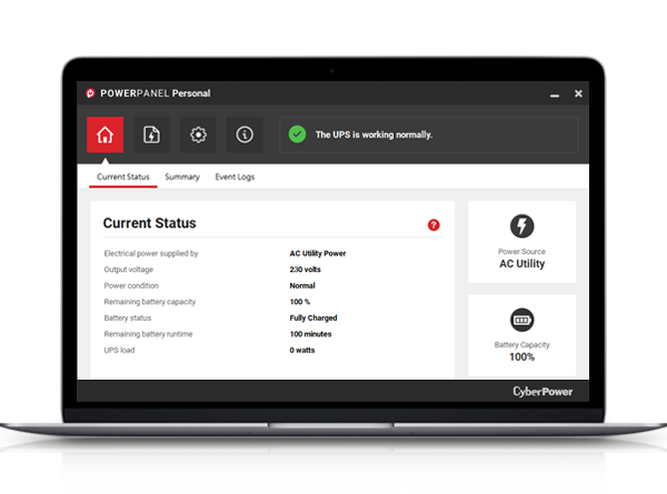 PowerPanel个人版软件可进行妥善计算机关机,避免停电时资料遗失。此软件也支持其他功能,如监控不间断电源系统、浏览历史纪录和设定各种参数。
